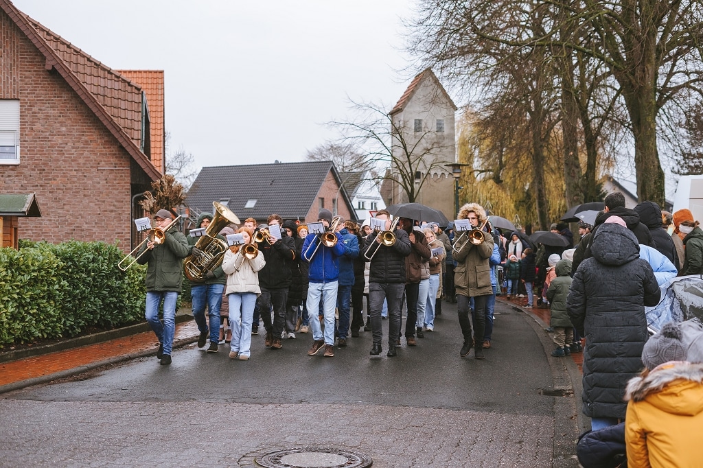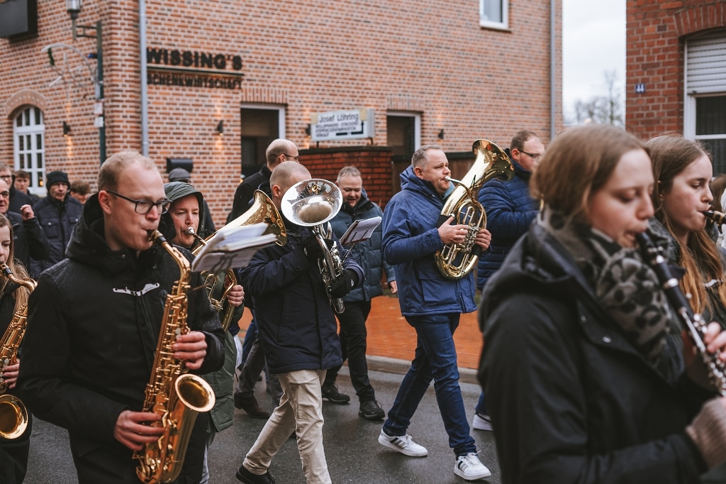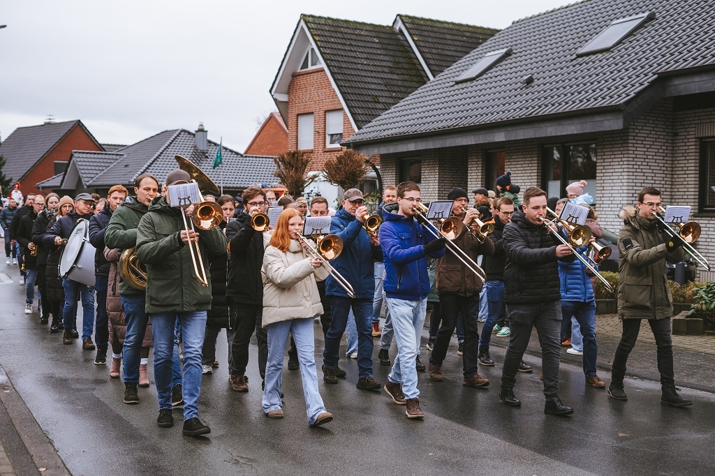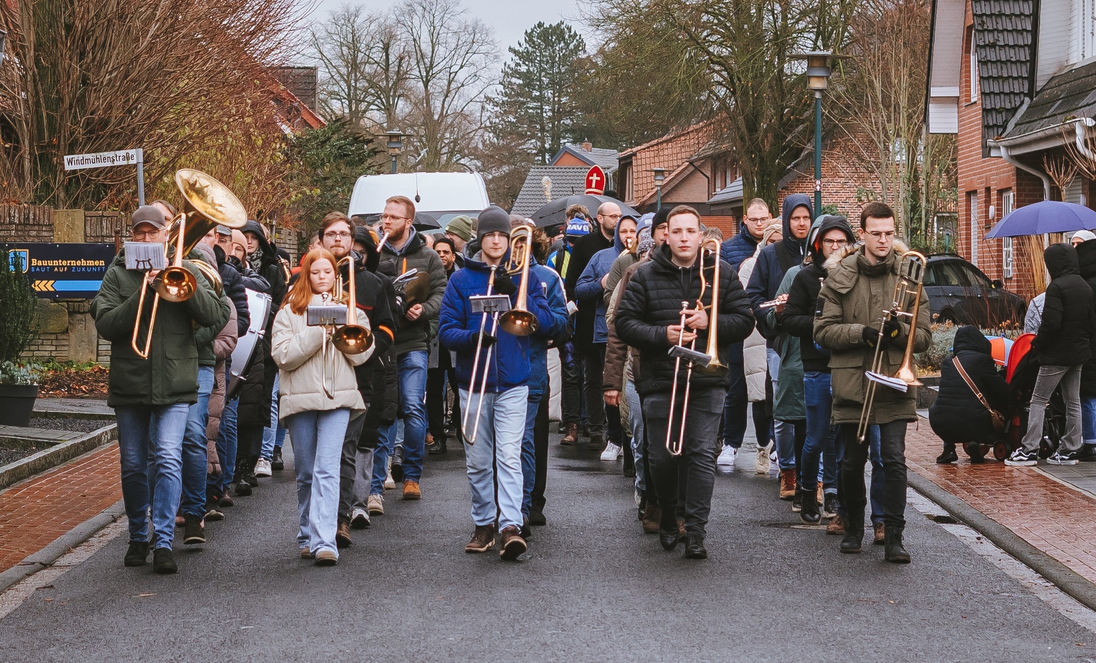 Wenn St. Nikolaus und Knecht Ruprecht Anfang Dezember in Nienborg zu Gast sind, dann ist traditionell auch der Musikverein Nienborg 1924 e.V. Sehr viele Bürgerinnen und Bürger empfingen am 6. Dezember 2025 (Samstag) den heiligen Mann und seinen Begleiter und zogen unter musikalischer Begleitung des Musikvereins zum Festplatz in der Pfarrkirche St. Peter und Paul.