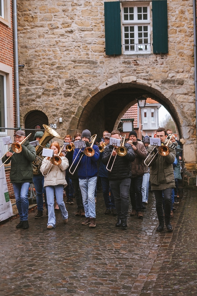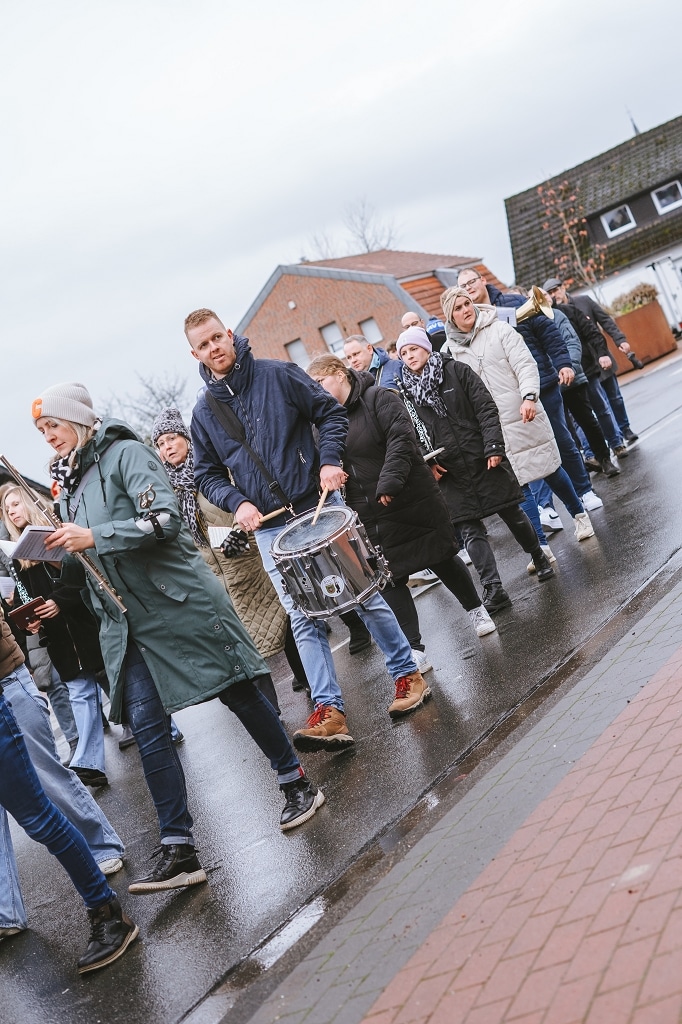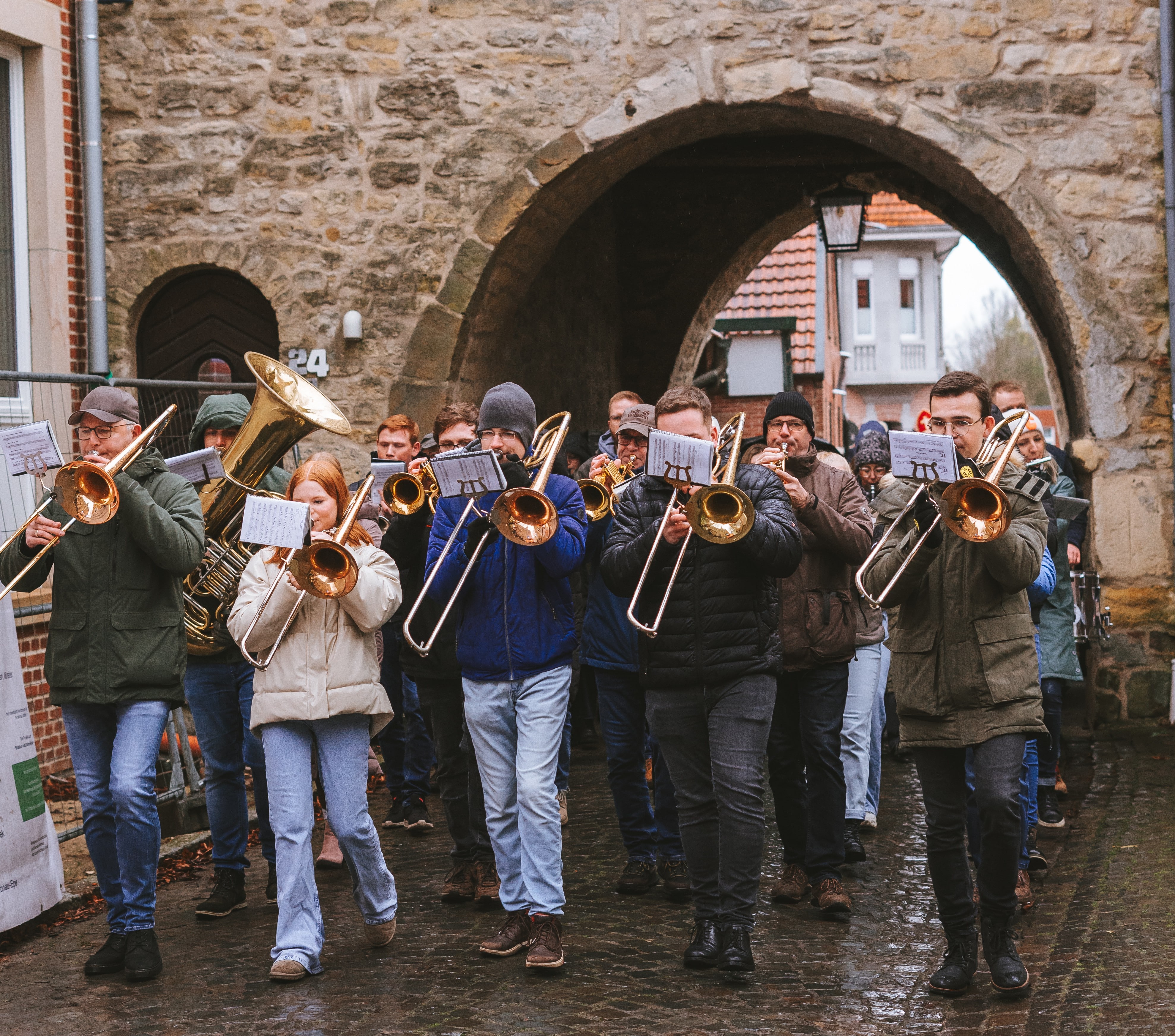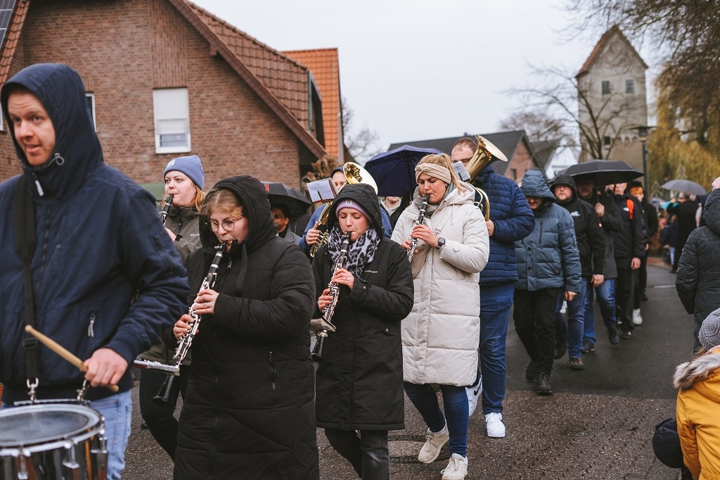 Wenn St. Nikolaus und Knecht Ruprecht Anfang Dezember in Nienborg zu Gast sind, dann ist traditionell auch der Musikverein Nienborg 1924 e.V. Sehr viele Bürgerinnen und Bürger empfingen am 6. Dezember 2025 (Samstag) den heiligen Mann und seinen Begleiter und zogen unter musikalischer Begleitung des Musikvereins zum Festplatz in der Pfarrkirche St. Peter und Paul.